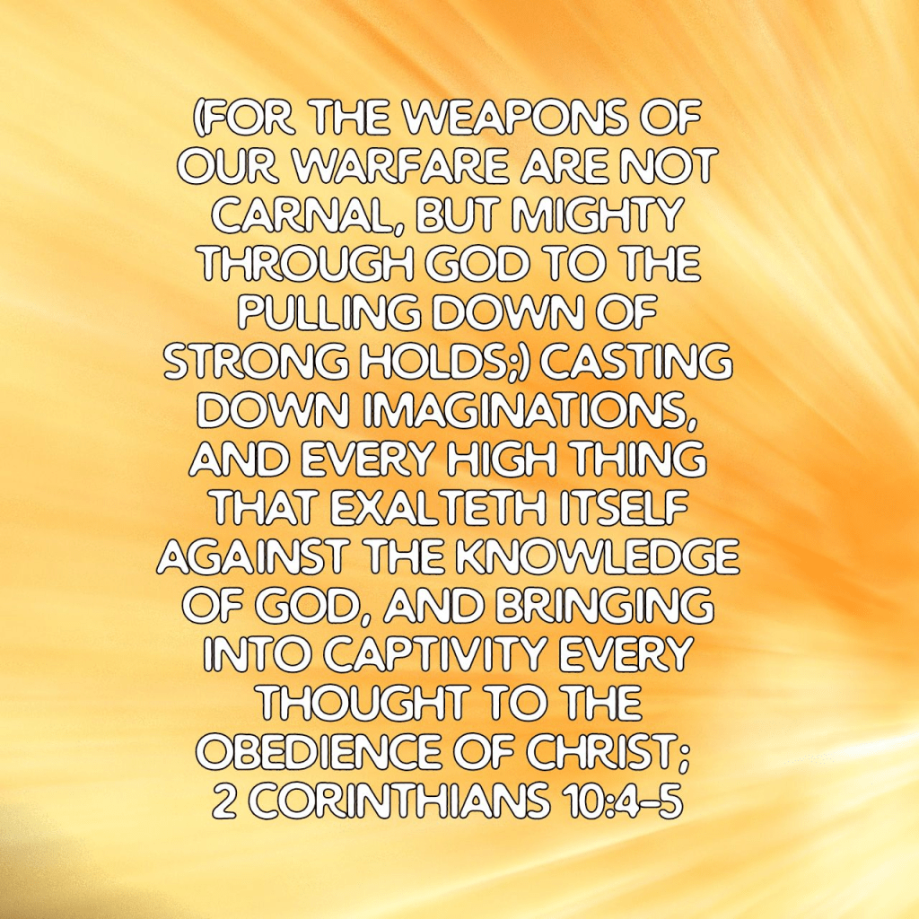 For the weapons of our warfare are not carnal but mighty in God for pulling down strongholds, casting down arguments and every high thing that exalts itself against the knowledge of God, bringing every thought into captivity to the obedience of Christ, II Corinthians 10:4-5 NKJV