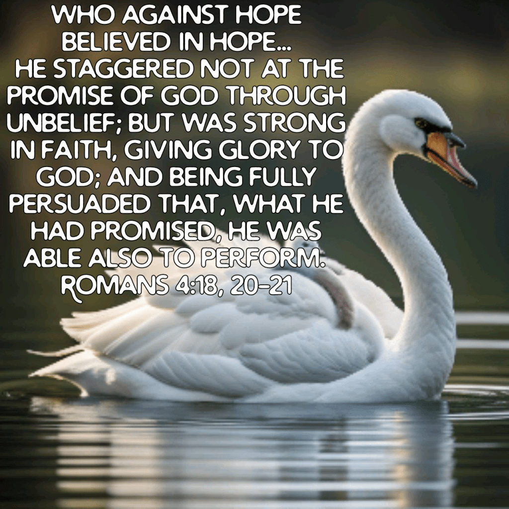 who, contrary to hope in hope believed… He did not waver at the promise of God through unbelief, but was strengthened in faith, giving glory to God, and being fully convinced that what He had promised He was also able to perform. Romans 4:18, 20-21 NKJV