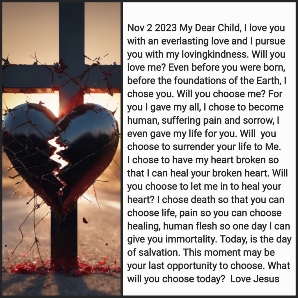 I chose to have my heart broken so that I can heal your broken heart. Will