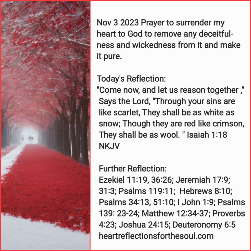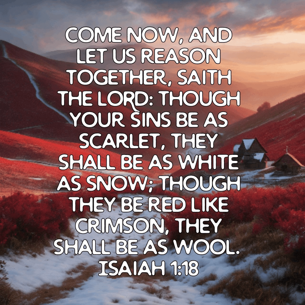 “Come now, and let us reason together ,” Says the Lord, “Through your sins are like scarlet, They shall be as white as snow; Though they are red like crimson, They shall be as wool. ” Isaiah 1:18 NKJV