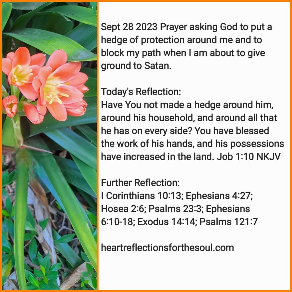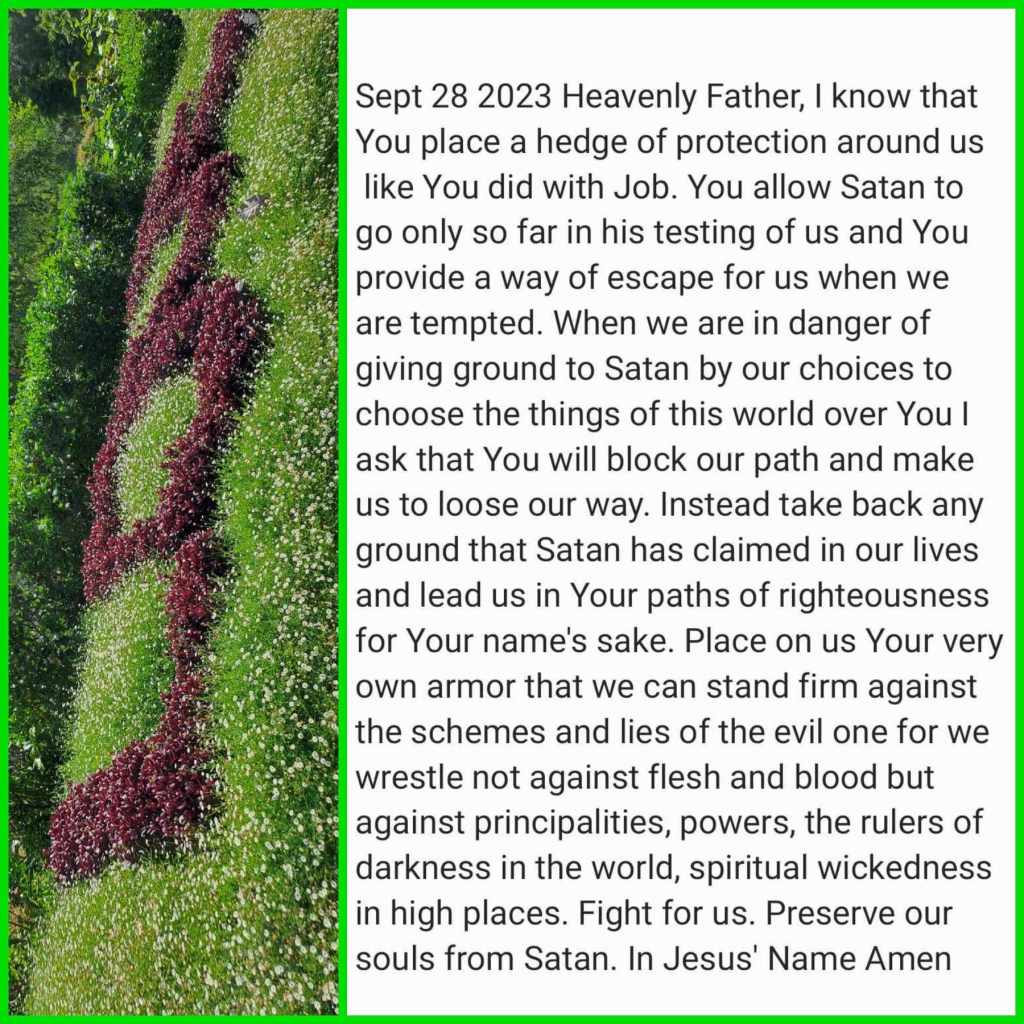 Heavenly Father, I know that You place a hedge of protection around us like You did with Job. You allow Satan to go only so far in his testing of us, and You provide a way of escape for us when we are tempted. When we are in danger of giving ground to Satan by our choices to choose the things of this world over You, I ask that You will block our path and make us to loose our way. Instead, take back any ground that Satan has claimed in our lives and lead us in Your paths of righteousness for Your name’s sake. Place on us Your very own armor that we can stand firm against the schemes and lies of the evil one for we wrestle not against flesh and blood but against principalities, powers, the rulers of darkness in the world, spiritual wickedness in high places. Fight for us. Preserve our souls from Satan. In Jesus’ Name Amen