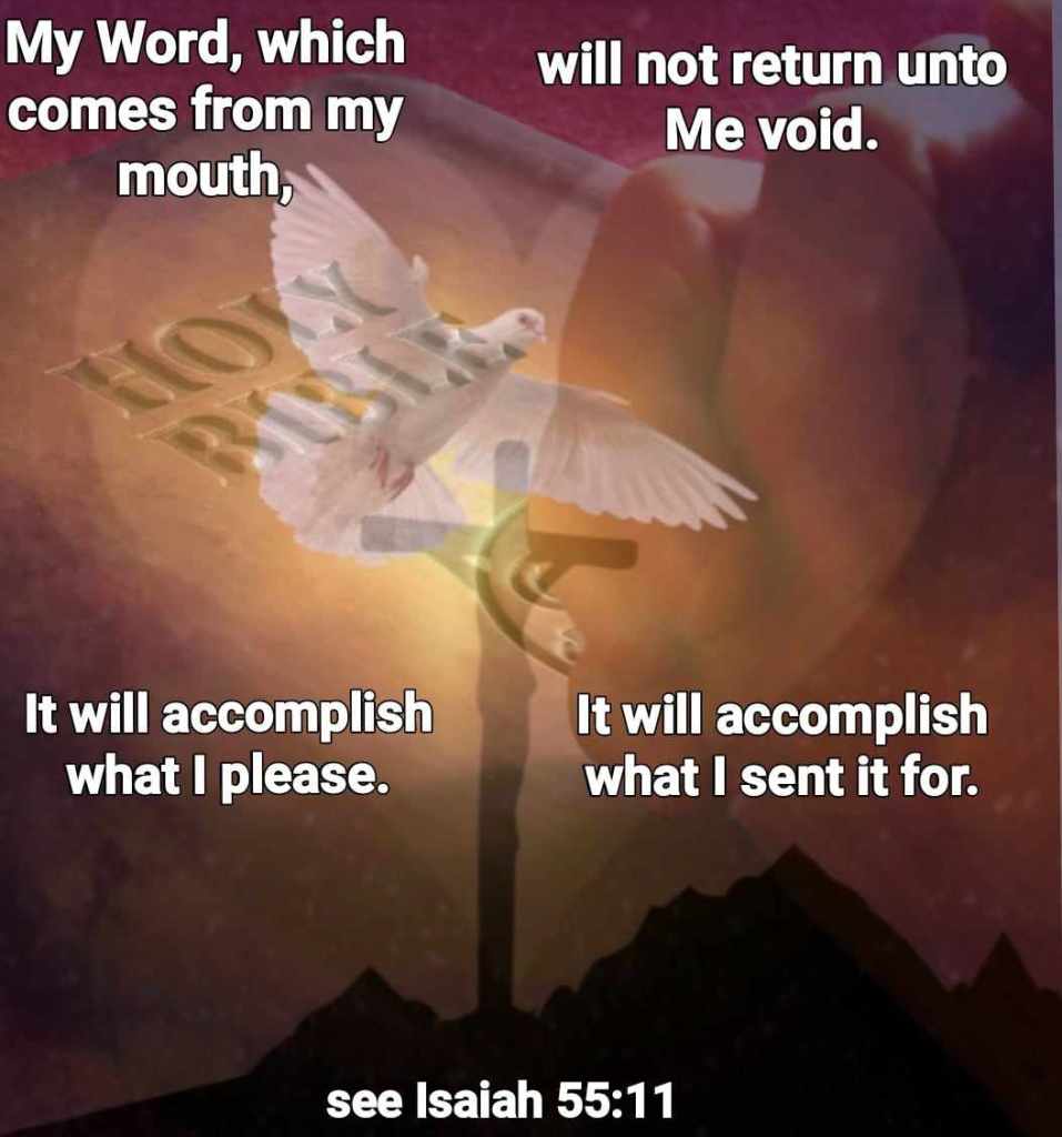 So shall My word be that goes forth from My mouth; it shall not return to Me void, But it shall accomplish what I please, And it shall prosper in the thing for which I sent it. Isaiah 55:11 NKJV
