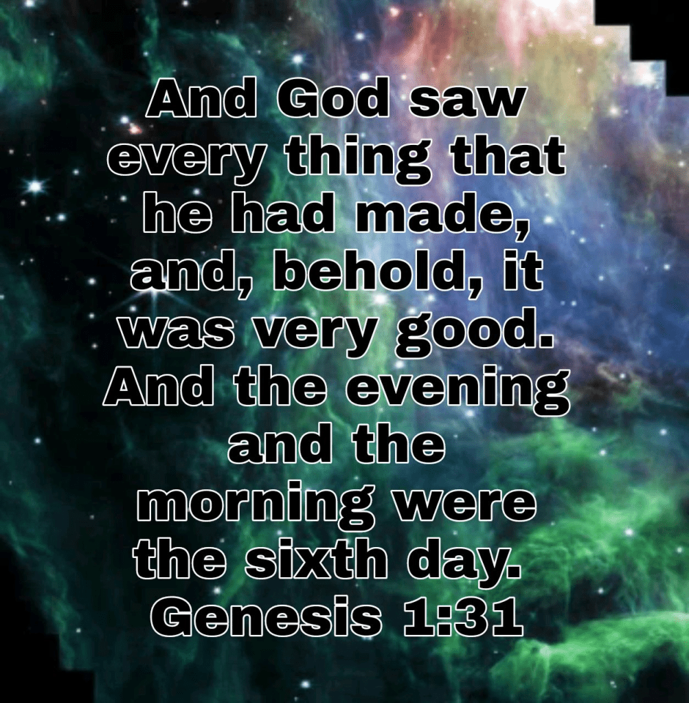 Then God saw everything that He had made, and indeed it was very good. So the evening and the morning were the sixth day. Genesis 1:31 NKJV