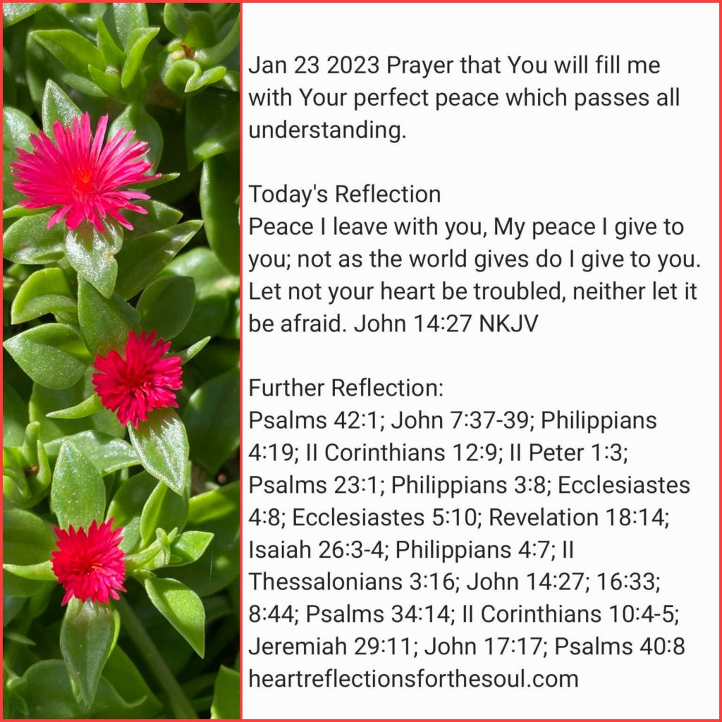 Peace I leave with you, My peace I give to you; not as the world gives do I give to you. Let not your heart be troubled, neither let it be afraid. John 14:27 NKJV