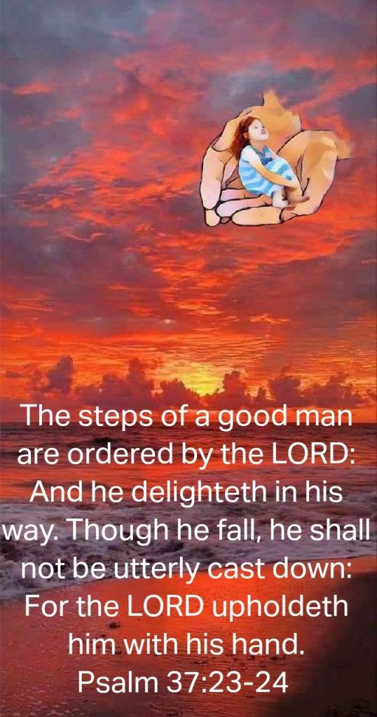 The steps of a good man are ordered by the Lord, And He delights in his way. Though he fall, he shall not be utterly cast down; For the Lord upholds him with His hand. Psalms 37:23-24 NKJV