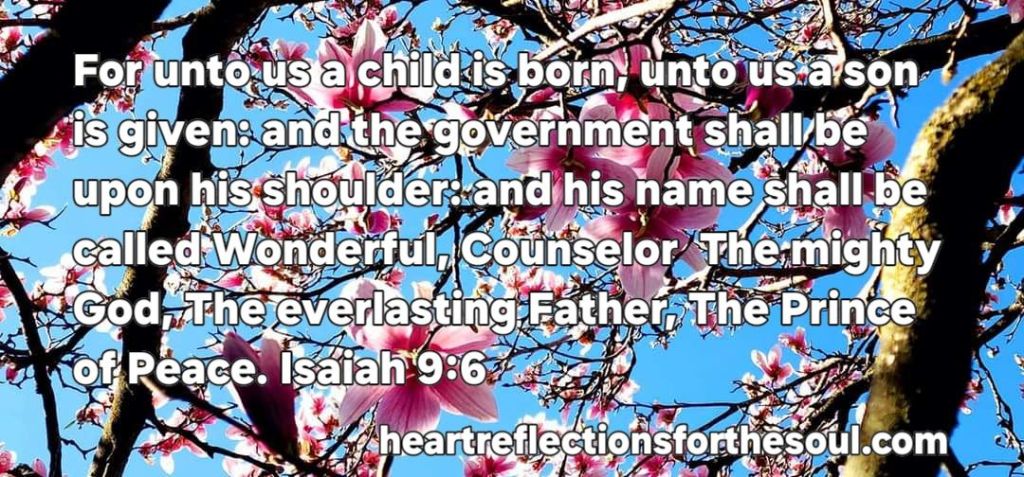 For unto us a Child is born, Unto us a Son is given; And the government will be upon His shoulder. And His name will be called Wonderful, Counselor, Mighty God, Everlasting Father, Prince of Peace. Isaiah 9:6 NKJV