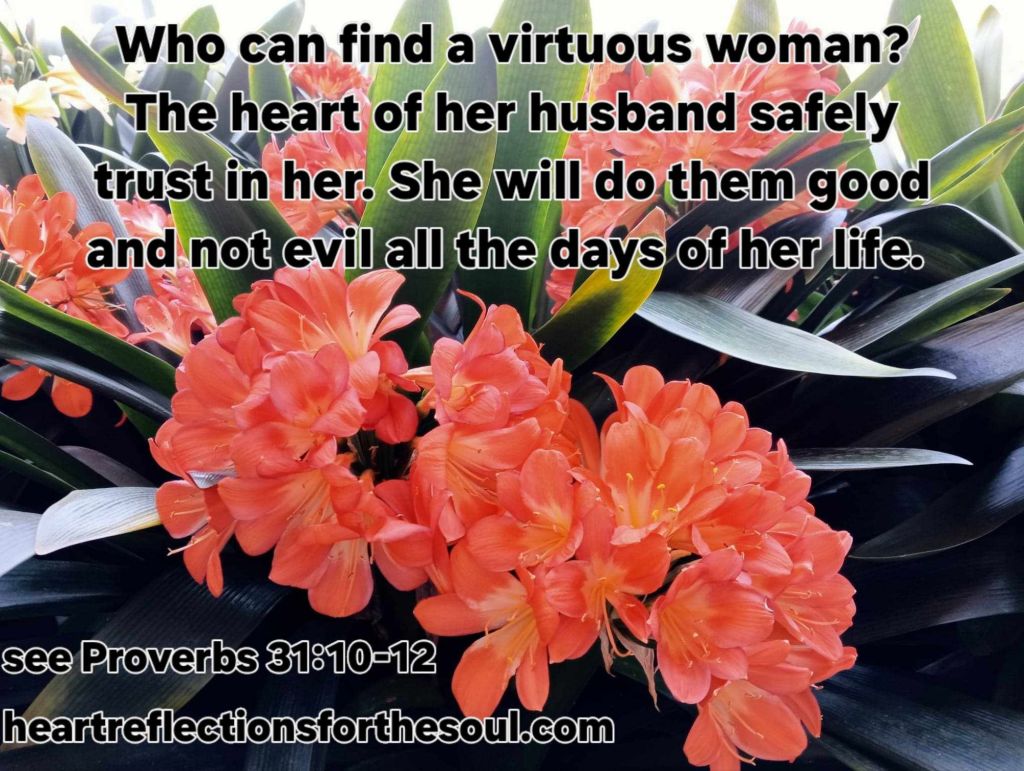 Who can find a virtuous wife? For her worth is far above rubies. The heart of her husband safely trusts her; so he will have no lack of gain. She does him good and not evil all the days of her life. Proverbs 31:10-12 NKJV
