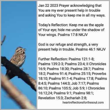 Today’s Reflection: Keep me as the apple of Your eye; hide me under the shadow of Your wings. Psalms 17:8 NKJV