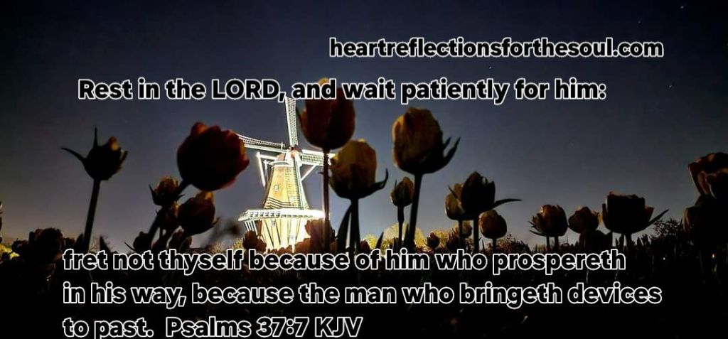 Rest in the Lord, and wait patiently for Him; do not fret because of him who prospers in his way, because of the man who brings wicked schemes to pass. Psalms 37:7 NKJV