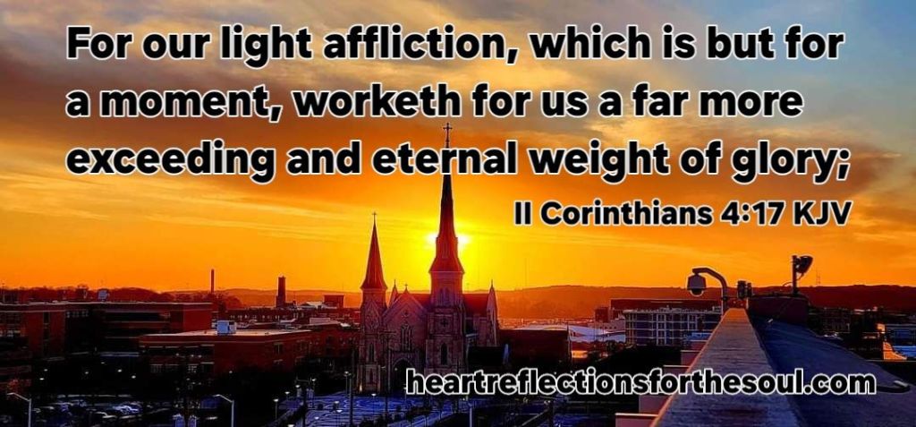 For our light affliction, which is but for a moment, is working for us a far more exceeding and eternal weight of glory II Corinthians 4:17 NKJV
