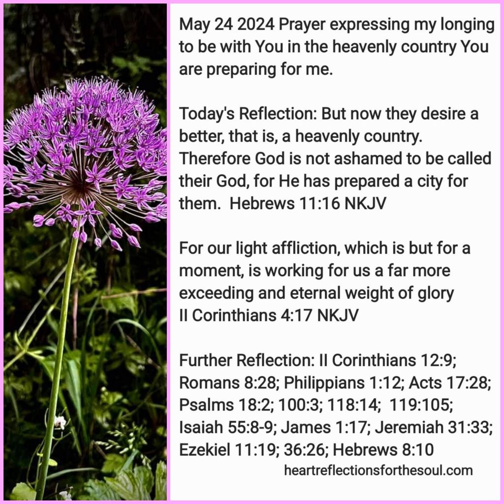 But now they desire a better, that is, a heavenly country. Therefore God is not ashamed to be called their God, for He has prepared a city for them. Hebrews 11:16 NKJV