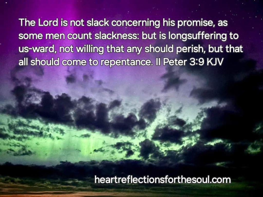 The Lord is not slack concerning His promise, as some count slackness, but is longsuffering towards us, not willing that any should perish but that all should come to repentance. II Peter 3:9 NKJV