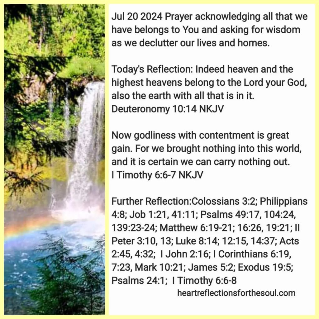 Today’s Reflection: Indeed heaven and the highest heavens belong to the Lord your God, also the earth with all that is in it. Deuteronomy 10:14 NKJV