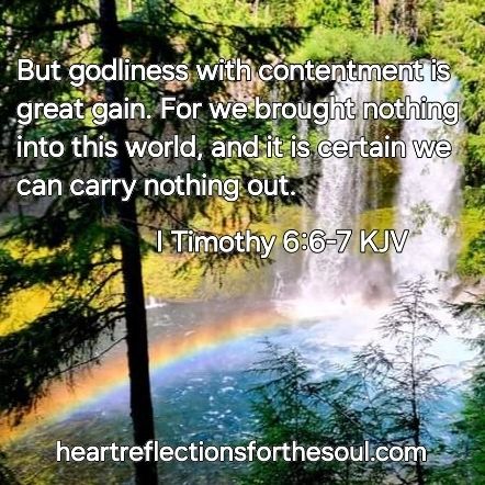 Now godliness with contentment is great gain. For we brought nothing into this world, and it is certain we can carry nothing out. I Timothy 6:6-7 NKJV