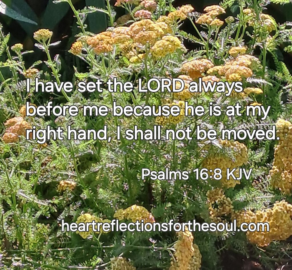 I have set the Lord always before me; because He is at my right hand I will not be moved. Psalms 16:8 NKJV