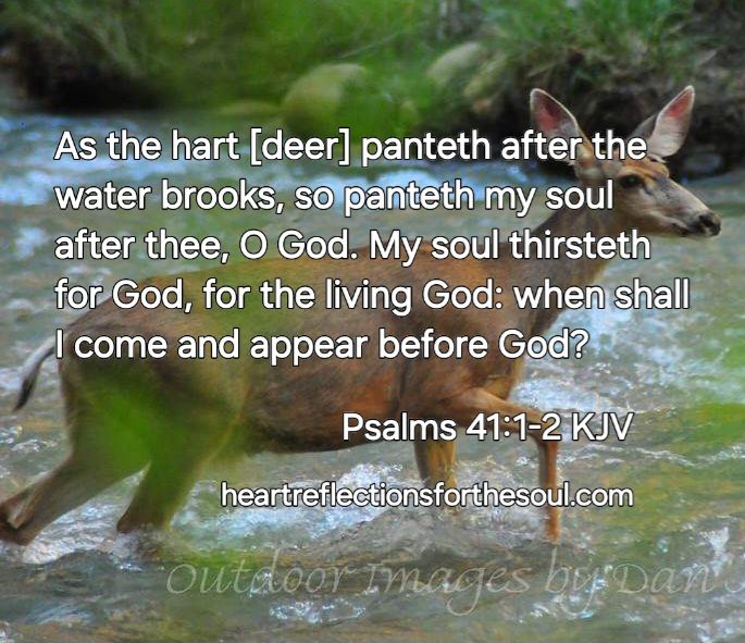 Today’s Reflection: As the deer pants for the water brooks, so pants my soul for You, O God. My soul thirsts for God, for the living God. When shall I come and appear before God? Psalms 42:1-2 NKJV