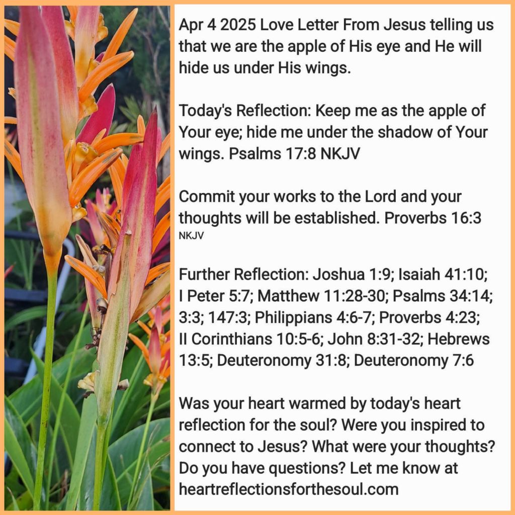 Today’s Reflection: Keep me as the apple of Your eye; hide me under the shadow of Your wings. Psalms 17:8 NKJV