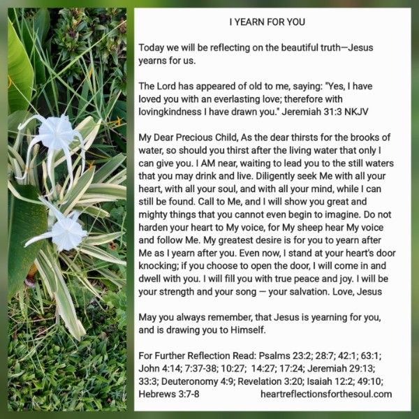 May you always remember, that Jesus is yearning for you, and is drawing you to Himself.